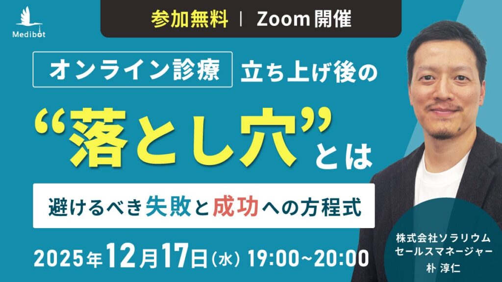 これからオンライン診療を立ち上げる方はもちろん、すでに導入済みで課題を感じているクリニックの方にも必ずお役に立てる内容です。
